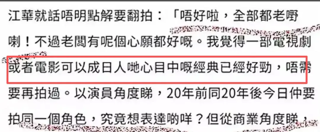 江华说得是很有道理的,经典已经非常好了,不需要再拍摄了,再者,20年前和20年后的演员要拍同一个角色,也是不太合适的。